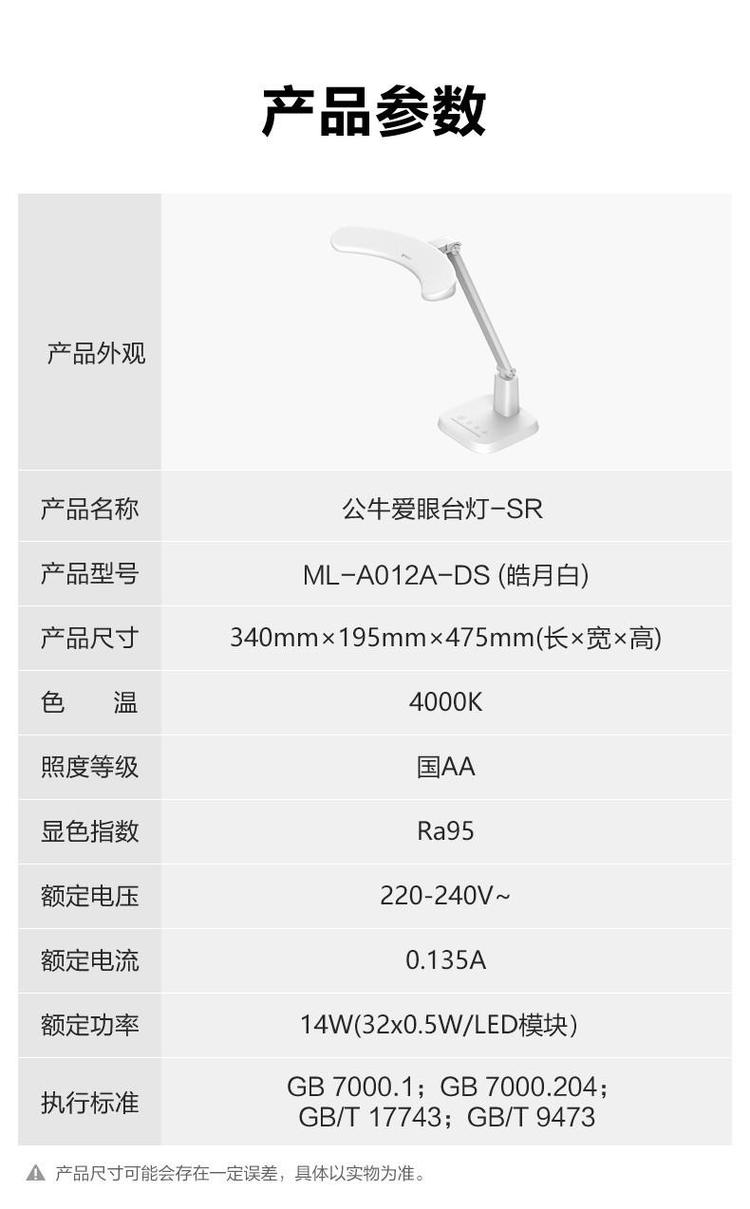 公牛 LED国AA级读写台灯智能护眼宿舍学习照明灯光学减影桌面台灯
